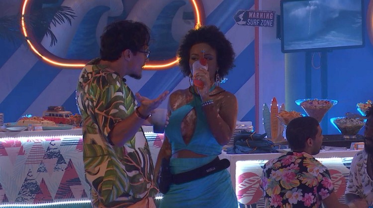 Eliezer e Natália continuam batendo papo juntos na Festa do Líder Pedro Scooby. Depois dos dois conversarem sobre a votação que formou o último Paredão do BBB 22, Natália comenta com o brother: "Eu vou ser sincera, é muito legal ser salvo do Paredão, mas não tem presente melhor do que eu", diz, em tom de brincadeira.